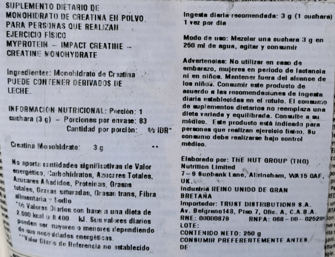 -Fórmula pura: CREATINA MONOHIDRATO.